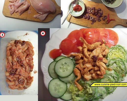 3 – mélangez les ingrédients ajoutez quelques C.A.S. d’huile d’olive, mettez le tout à mariner au réfrigérateur jusqu’au repas (c’est mieux de faire mariner quelques heures).