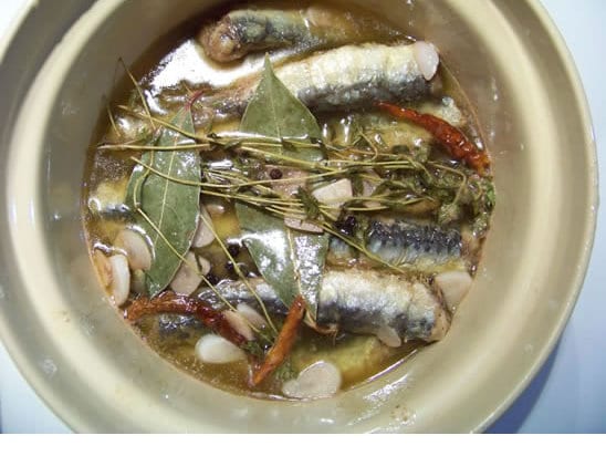 Faites chauffer le mélange huile vianigre avec les aromates et les gousses d’ail émincées (n’hésitez pas à charger en piment) et faites cuire à feu doux 15mn. Versez le liquide sur les sardines. Laissez refroidir et conservez au frais 48h avant de servir, pour que les sardines ‘imprègnent bien des aromates.