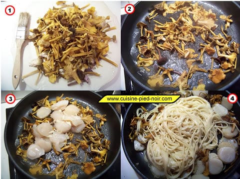 Préparation pour spaghetti aux saint-Jacques et champignons des bois