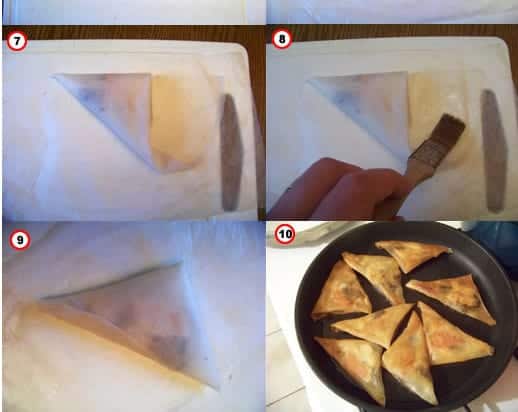 Faites de même pour tous les autres triangles. Faites-les ensuite dorer à la poêle. Servez bien chaud avec une salade de roquette.