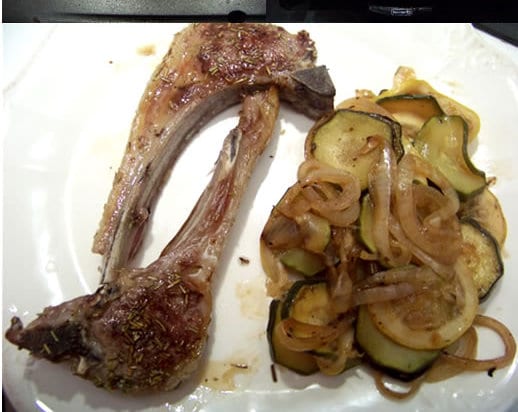 Faites cuire les côtes d’agneau des deux côtés jusqu’à ce qu’elles soient bien grillées. Sur la fin, faites réchauffer les légumes à côté. Servez rapidement, dès que les côtes sont cuites.