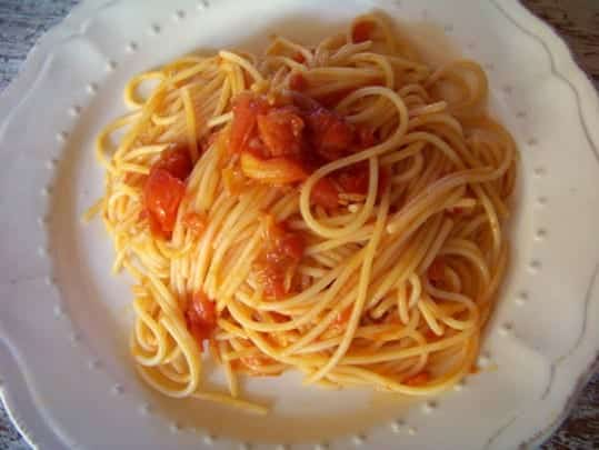 • 500g de spaghettis, 250g de thon à l'huile ou au nature (le thon à l'huile est meilleur), 450g de tomates concassées (une boîte) 3 C.A.S. d'huile d'olive, 2 gousses d'ail, 1 piment sec, 1 C.A.S. de câpres au sel ou à défaut au vinaigre (mais c'est moins bon)