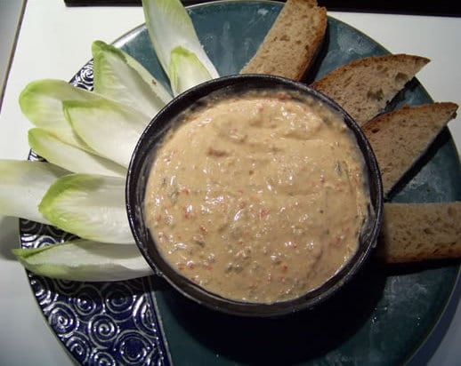 • accompagnement : pain pitta ou pain de campagne, batonnets de crudités, feuilles d'endives