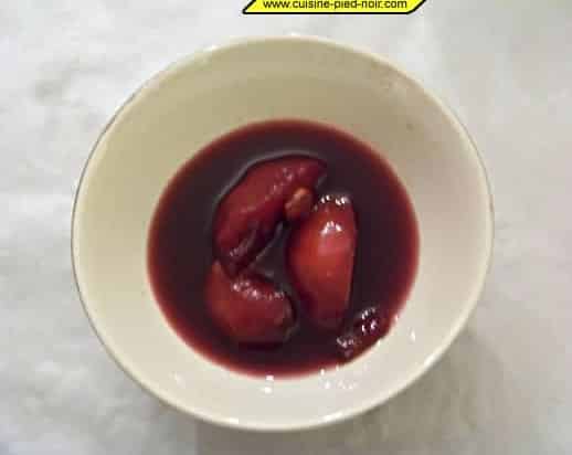 Dans une casserole, faites bouillir le vin, le sucre, les rondelles de citron les amandes et les épices. Mélangez jusqu’à ce que le sucre soit dissout. Laissez cuire à petit bouillon jusqu’à ce que le sirop épaississe. Pendant ce temps, épluchez les pêches, puis plongez-les 5mn dans le sirop bouillant. Laissez refroidir complètement. Placez au réfrigérateur pendant au moins 6h, le temps que les saveurs s’interpénètrent, et servez en dessert avec éventuellement des cigarettes russes ou des tuiles aux amandes.