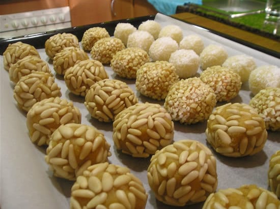 – A l’aide d’un pinceau badigeonner les panellets avec le jaune d’oeuf.
