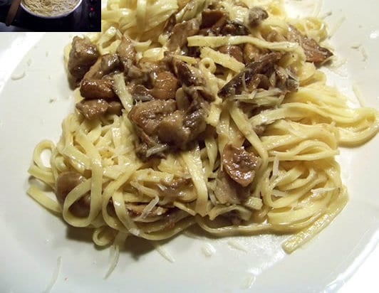 Pendant ce temps faites cuire les fettuccini dans une grande quantité d’eau salée. Egouttez-les, et mélangez dans la poêle avec les cèpes, en remettant 1 à 2mn sur le feu de façon à ce que l’ensemble soit bien amalgamé.