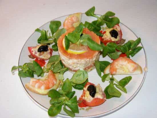 5 Décorez avec une fine tranche de citron, des olives, un petit bouquet de mâche tout autour quelques petites feuilles de mâche
