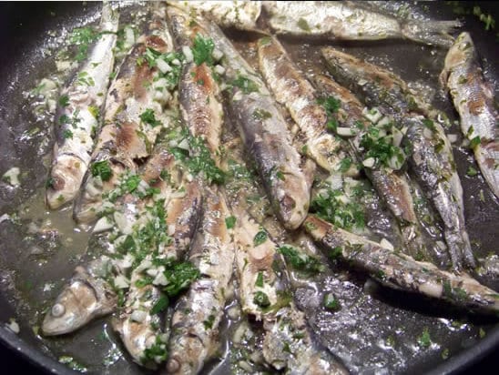 Videz les sardines. Hachez le persil et l’ail. Dans un récipient, mettre une couche de sardines, ajoutez un peu de mélange ail persil, sel et poivre, remettez une couche de sardines et recommencez. Arrosez le tout avec le jus de citron. Laissez mariner au frais plusieurs heures. Egouttez les sardines soigneusement, puis faites-les cuire à la poêle, au grill ou au barbecue.