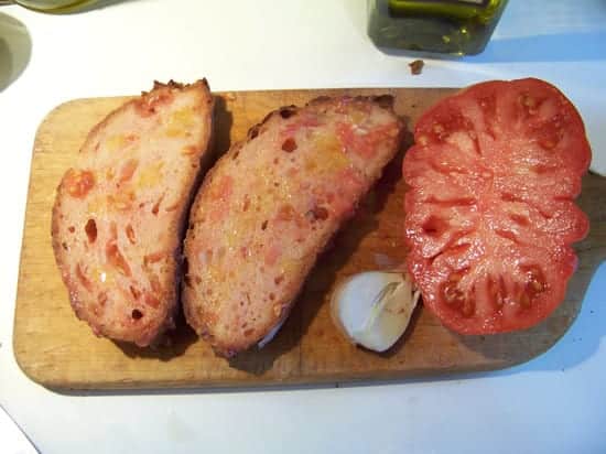 Faites griller les tartines de pain. Frottez-les avec une gousse d’ail puis avec une demi-tomate. Ajoutez un filet d’huile d’olive et une pincée de sel et dégustez aussitôt