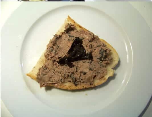 crostinis à la mousse de foie de volaille et trompettes de la mort