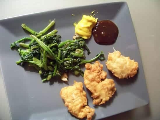 Au moment de faire les beignets, Faites chauffer 2cm d’huile dans une poêle. Quand l’huile est à bonne température, trempez les bouchées dans la pâte puis faite-les frire, en retornant les beignets quand ils sont bien dorés d’un côté. (On peut les retourner plusieurs fois)