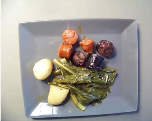 • 1kg de pommes de terre, 1 ou deux choux nouveaux, 1 à 2 morcillas séchées et fumées ou du chourizo noir portugais, 1 chorizo espagnol à cuire ou un chourizo portugais, un peu de sel