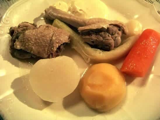 Servez le pot au feu de canard avec la sauce crème ou une sauce au raifort.
