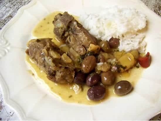 Accompagnez de semoule de couscous beurrée, de riz blanc ou encore de pommes de terre (on peut les ajouter crues dans le plat et les faire cuire la dernière heure avec la viande)