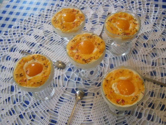 2/ Mixer les jaunes d’oeufs avec 2 oreillons de pêches