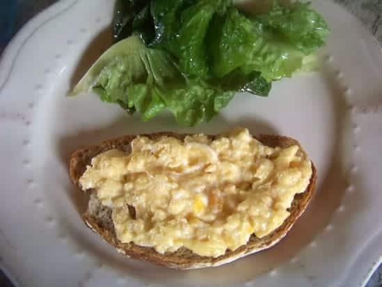 Versez les oeufs sur les tranches de pain et mangez aussitôt.