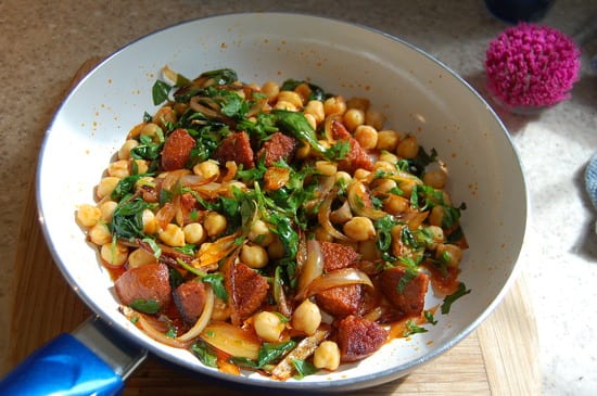 Préparation pour Pois Chiches a la sobrassada