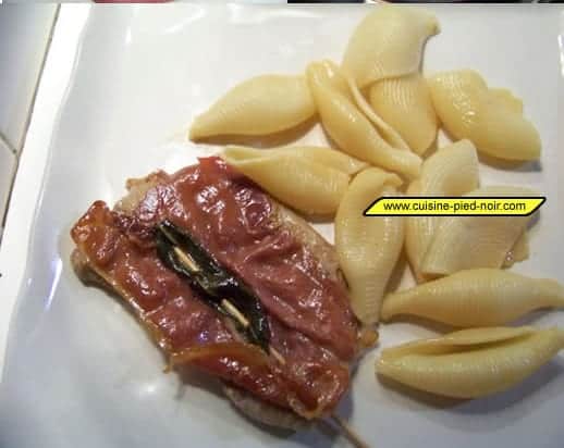 Un délicieux plat italien, simple à préparer. Si vous ne trouvez pas de sauge vous pouvez la remaplcer par du romarin. De même on peut remplacer le veau par de la dinde voire du porc.