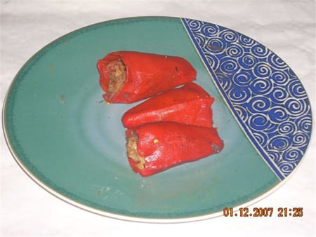 Ouvrez la boîte de piments et égouttez-les. Avec une cuiller, farcissez les piments de la farce que vous avez confectionnée. Avant de servir, passez les piments quelques minutes au four pour les réchauffer. Servez
