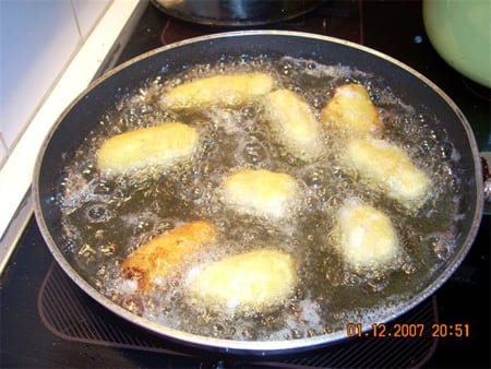 Une fois vos croquetas formées, vous les passez dans la farine, puis dans l’oeuf, puis dans la chapelure, et ensuite dans la friture. Il convient de paner les corquetas au dernier moment, sinon la chapelure risque de s’humidifer et la croqueta peut éclater à la cuisson.