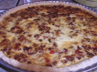 Faire revenir l’oignon, puis le poivron. Rajouter le concentré de tomates, le cumin, le sel, le poivre, le tabasco et les steaks. Faire cuire le tout 10 mn. Verser le tout sur la pâte brisée.